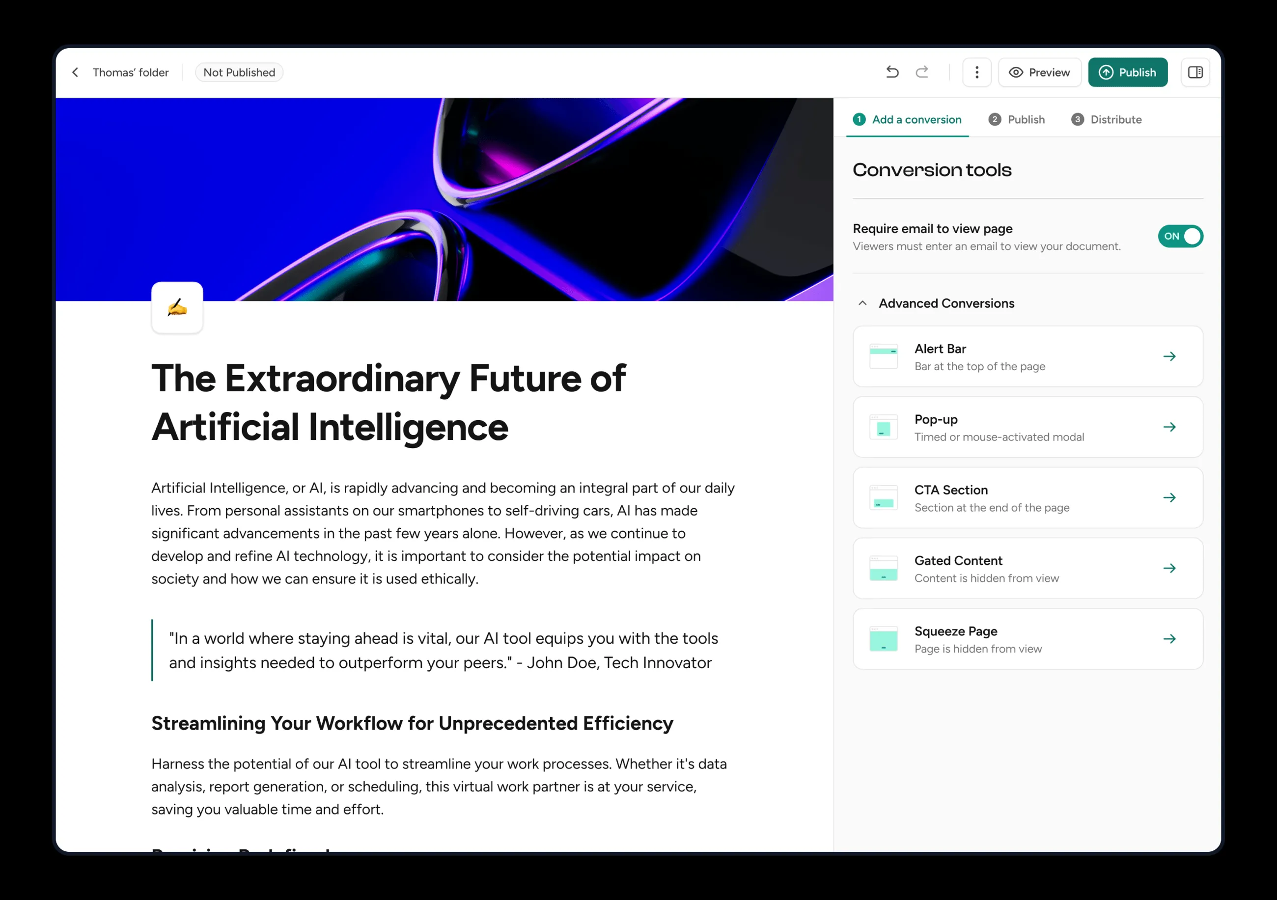 “We’ve decreased the time it takes to get lead magnets out from 2 weeks to 20 minutes with Distribute.”